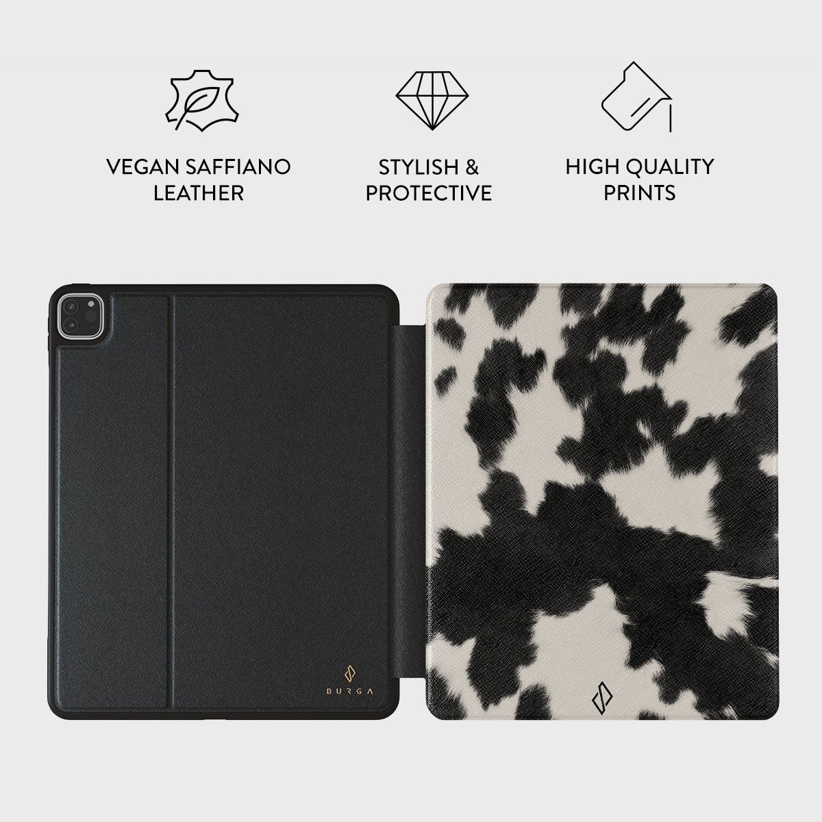 * The case is not textured-it is a printed pattern *Your iPad deserves to look cute and stay protected at all times. and our Achromatic iPad Pro 11 (4th/3rd Gen) folio case will help you keep it safe and sound. The cow print in black and white is both daring and classic. making it the perfect addition to your accessory collection.